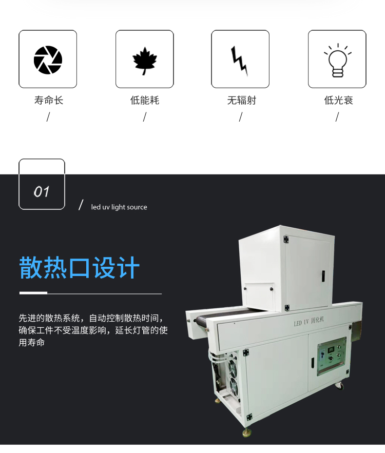 产品规格:生产厂家:高琼产品名称:胶水粘接leduv机外形尺寸:1200*650*1200mm整机功率:5.5kw输送速度:0-10m/min光源配置:2kw*400mm380V*2支功率调节:0-100%调节电源要求:380V输送宽度:350mm网带材料:不锈钢主峰波长:395nm应用范围:胶水粘接、丝印